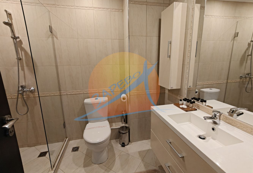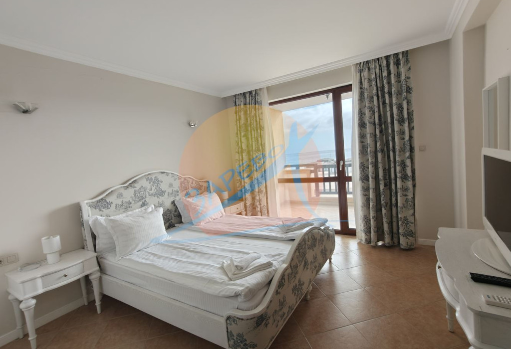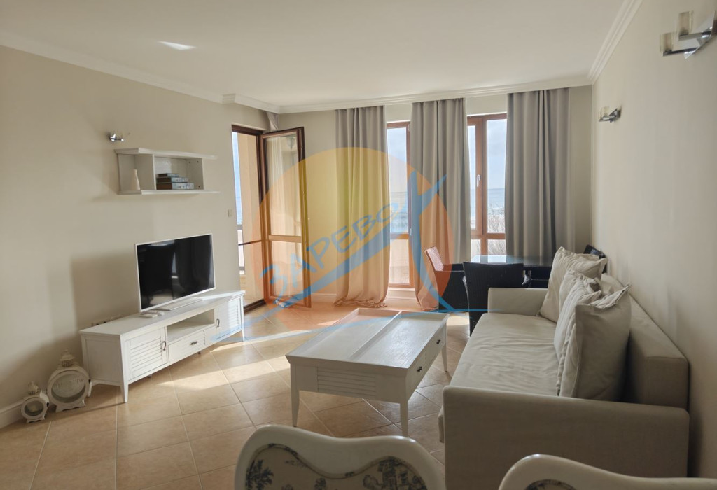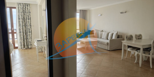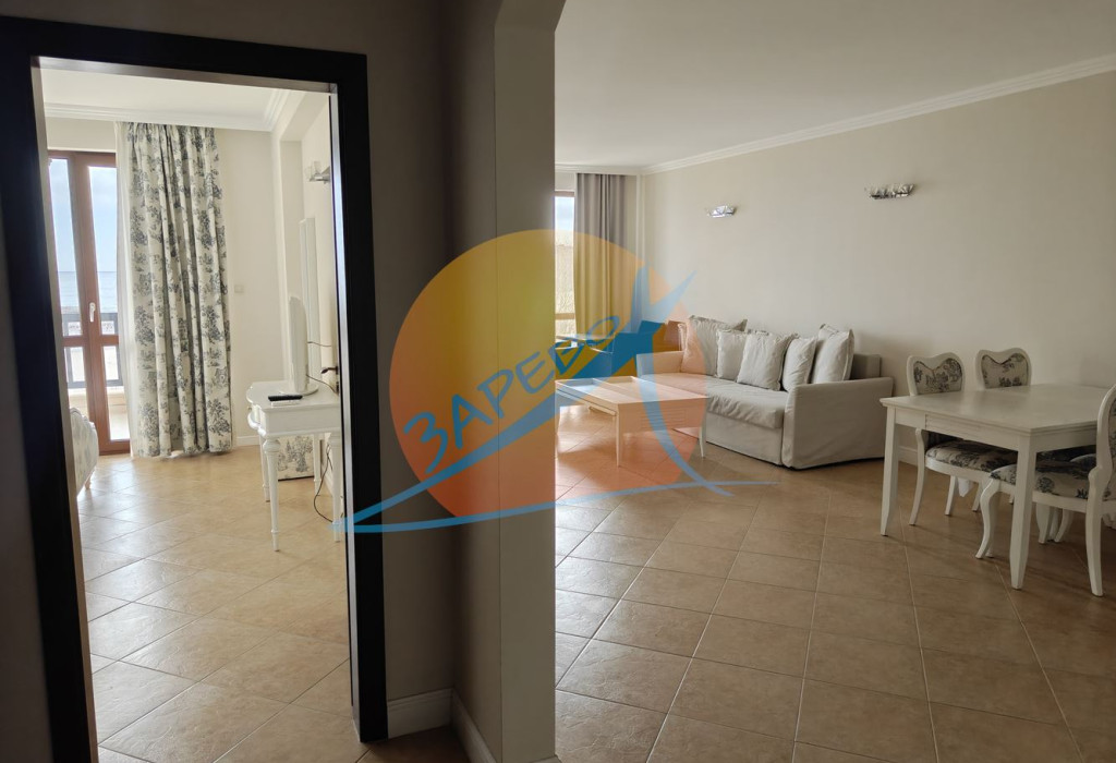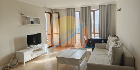 Lozenets, Oasis Beach Club, two-room furnished apartment with sea view in Oasis Beach Club, Lozenets. The apartment is located in section A - closest to the sea, on the fourth, not the last floor with an area of 92.34 square meters. The apartment has a separate bedroom, stylishly furnished and equipped, it consists of a spacious living room with a separate kitchen area, a dining room, a large living room with a relaxation area, a panoramic Ferenc spring and a terrace with a sea view, which can be accessed from both the bedroom and the living room, an entrance hall, a bathroom with a toilet. For sale furnished and equipped, completely ready for use.