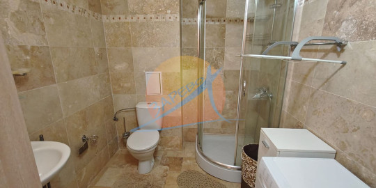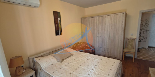 Уникална локация, прекрасна инфраструктура, идеален за инвестиция - за лично ползване или отдаване под наем. Апартаментът е просторен, с площ от 80 кв. м., разположен на първи, партерен етаж. Имотът е с гледка към собствен вътрешен двор с градинка и със странична гледка към морето, с изложение изток - юг. Напълно обзаведен и оборудван, готов за ползване. Състои се от входно антре, просторна баня с тоалетна и душкабина, дневна с кухня и трапезария и хол, отделна спалня и просторна веранда, на която се излиза от двете стаи, с градинка и странична гледка към морето. Луксозно завършен с естествен камък в баните, коридорите и общите части.