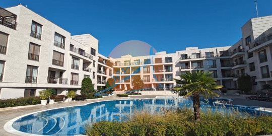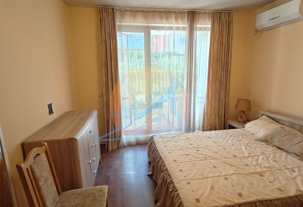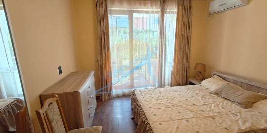 Сарафово, първа линия до плажа, с гледка море! Готов двустаен обзаведен апартамент на сух, висок партер, в целогодишен затворен комплекс на първа линия Даймънд Бийч (Diamond Beach Sarafovo).