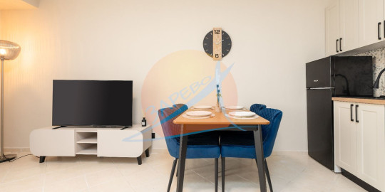 Състои се от антре, хол-трапезария с кухненски бокс, спалня, втора отделна спалня, 2 бани с тоалетна и балкон.