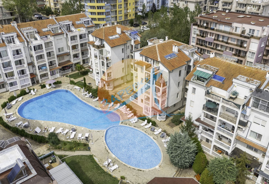Слънчев бряг, обзаведен тристаен с гледка басейн, Браво 5 (Bravo 5), ТОП-ЦЕНТЪР на Слънчев Бряг - само на 100 м от р-т Джани и на 350 м. от плажа!
