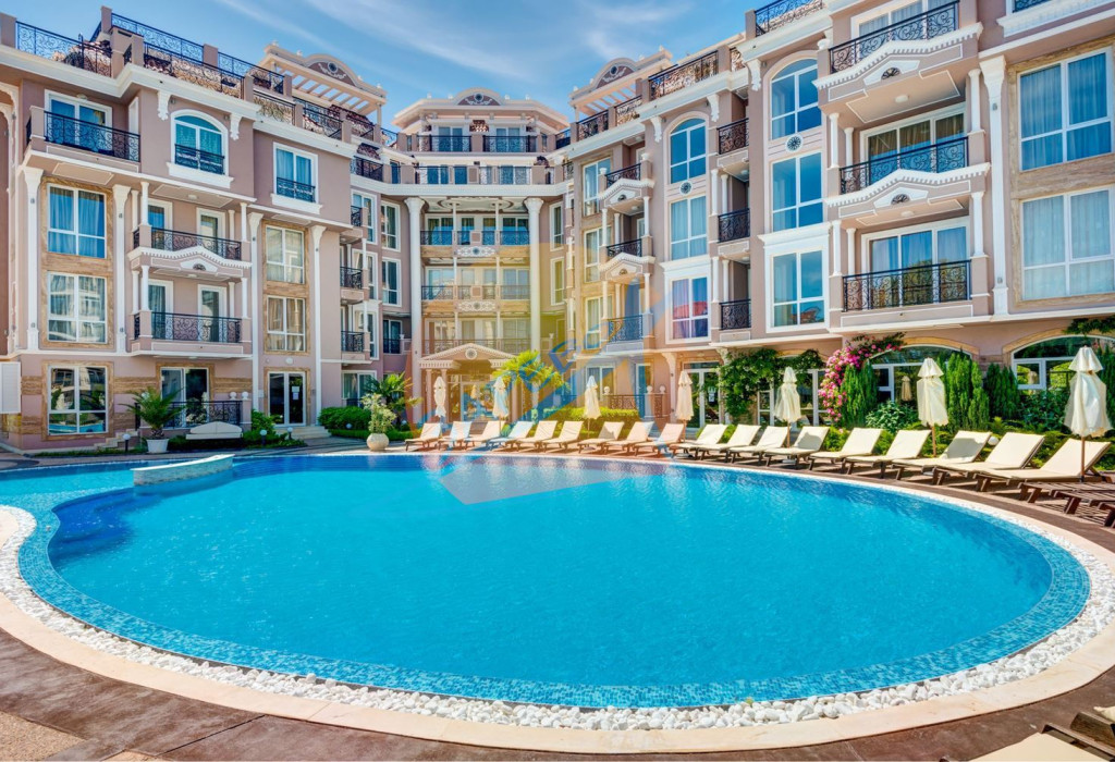 Слънчев бряг, стилно обзаведено студио разположено на 2 етаж с гледка към тенис корта в бутиковия комплекс “Изида Палас 2” (Izzida Palace 2). Луксозно обзаведено студио в бутиков новопостроен прекрасен комплекс с Акт 16 - Изида Палас 2, който се намира на обща територия с вече построения комплекс Изида Палас. Комплексът е разположен в тихата и спокойна част на курорт Слънчев Бряг, в непосредствена близост до аква парка и на 10-15 минути пеша до плажа.