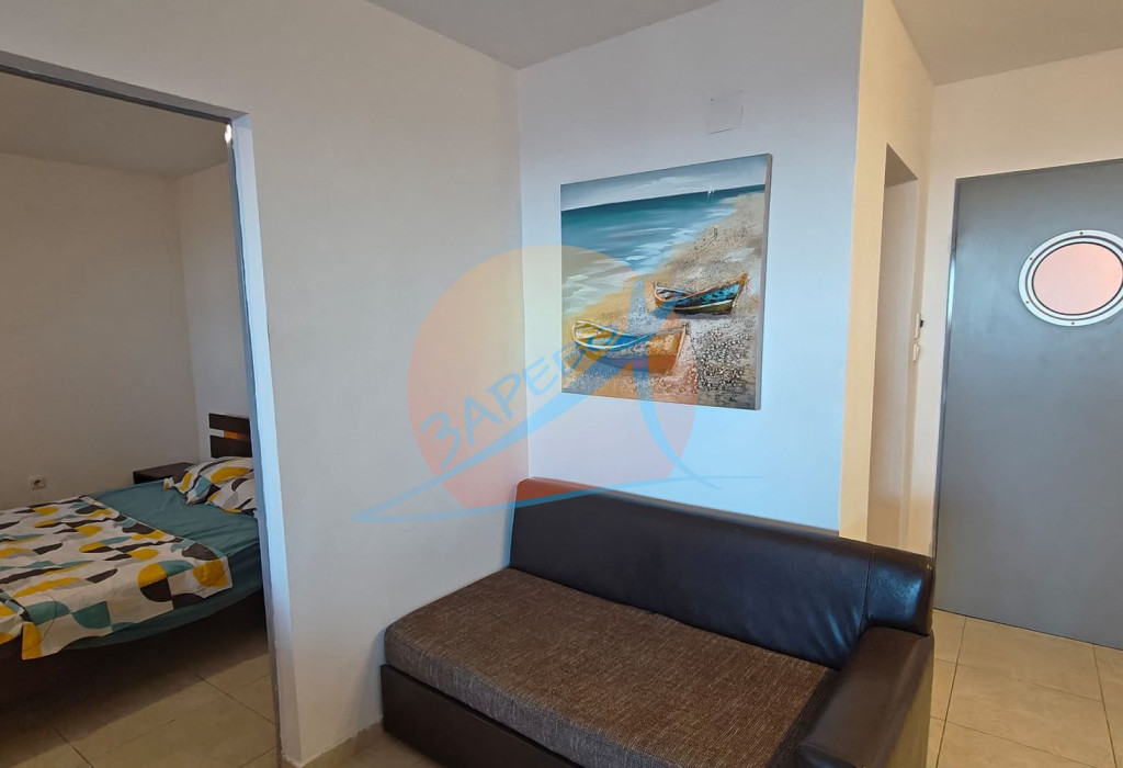 Апартаментът се намира на партерен етаж и е напълно обзаведен и оборудван, готов за ползване и почивка, подовите настилки са гранитогрес, с климатици и в двете стаи. Състои се от голяма всекидневна с кухня и трапезария, спалня, баня с тоалетна и веранда с излаз към басейна и прекрасна гледка към морето и плажа Хармани. Комплекс Перлите е малък и уютен, с басейн и паркинг. Районът е тих и спокоен, в близост до целогодишно работещата инфраструктура на Созопол.