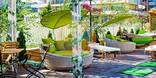 Територията е украсена с живи цветя във форма на река и басейн, проектиран в необикновена форма. Наблизо има паркова зона с обща площ 9 дка. Благоустроената територия, която граничи с комплекса и близкото разстояние до морето създават свой уникален климат.