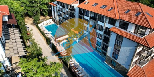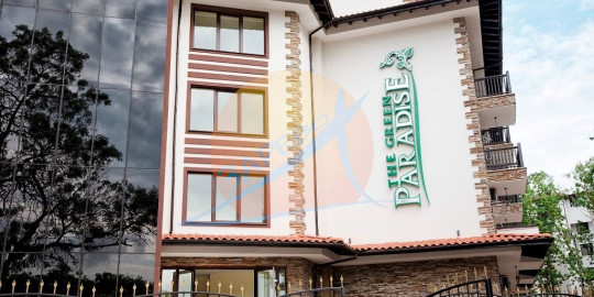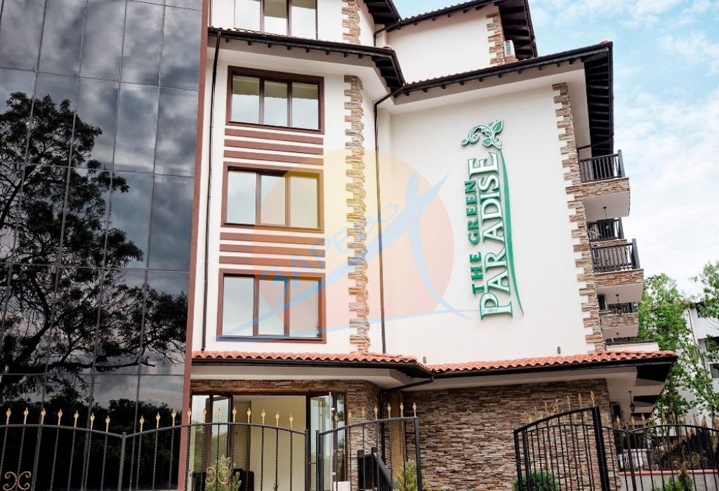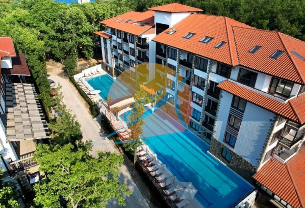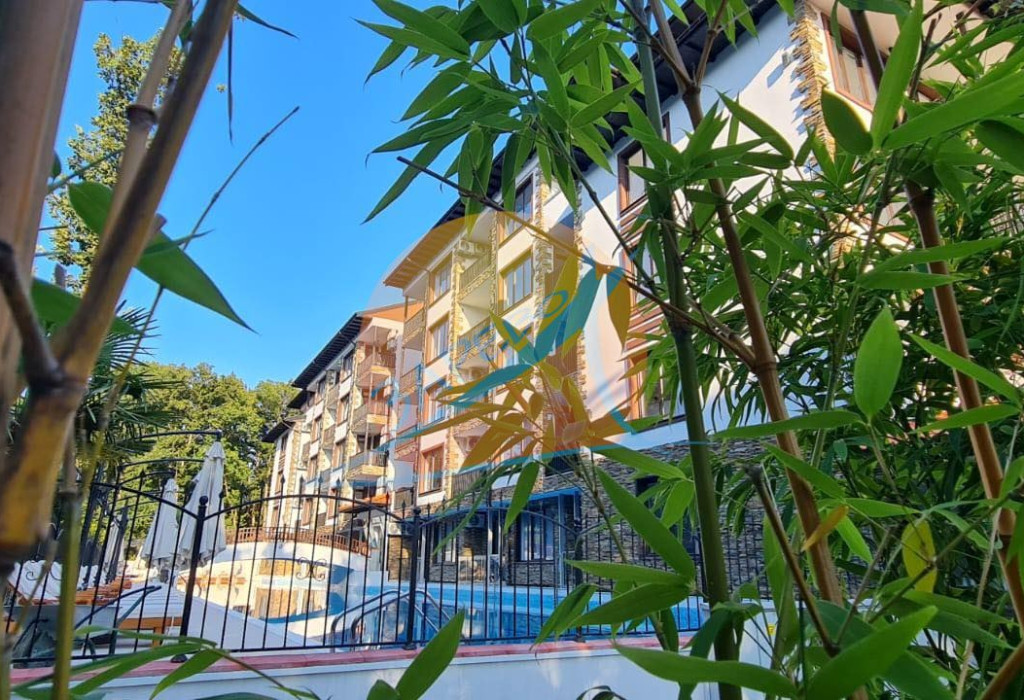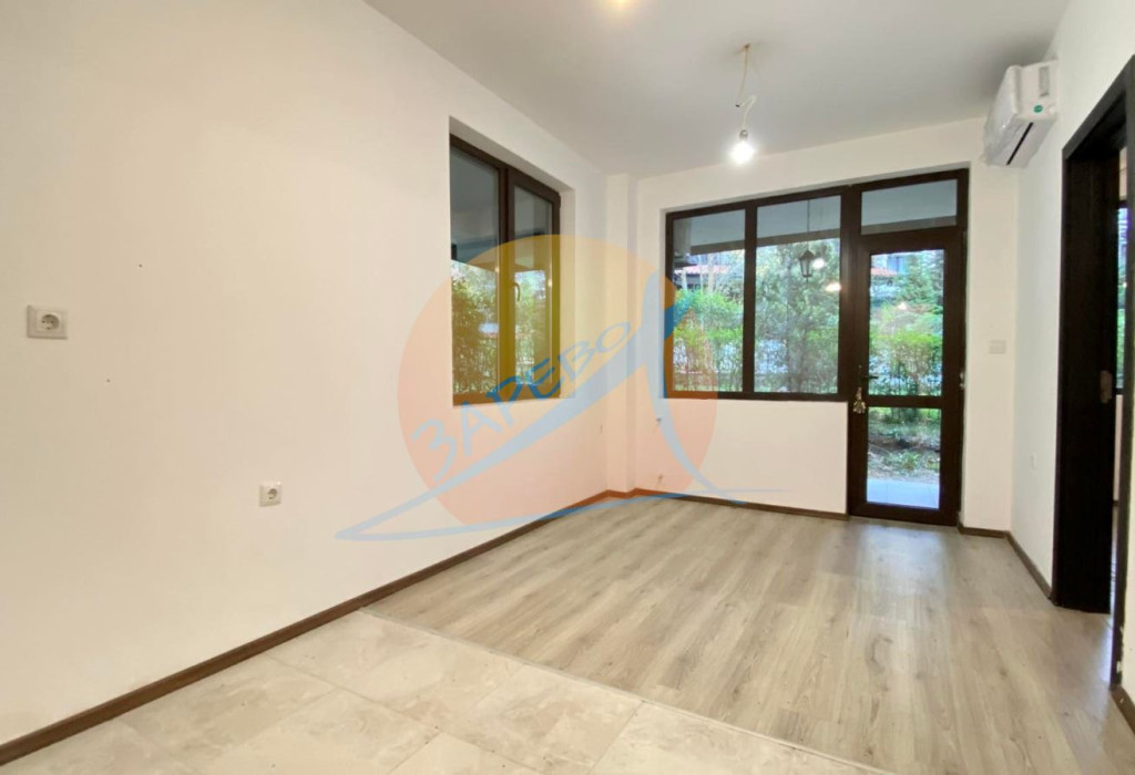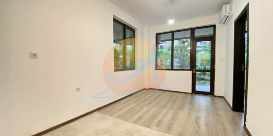 Primorsko, un nouvel appartement au rez-de-chaussée avec une cour anglaise, à clé en main, Green Paradise IV (Green Paradise IV). mètres, ce qui est un bonus à l'appartement. Il est disponible à la vente terminé, avec un revêtement de sol, des murs peints, une salle de bain entièrement équipée avec douche et chaudière, climatisation, portes intérieures. L'endroit où se trouve le complexe vous offrira le silence, le confort, la tranquillité, l'air forestier propre, l'ombre et la fraîcheur. Le complexe ne dure que 10 minutes à pied de la plage et du centre de Primorsko.