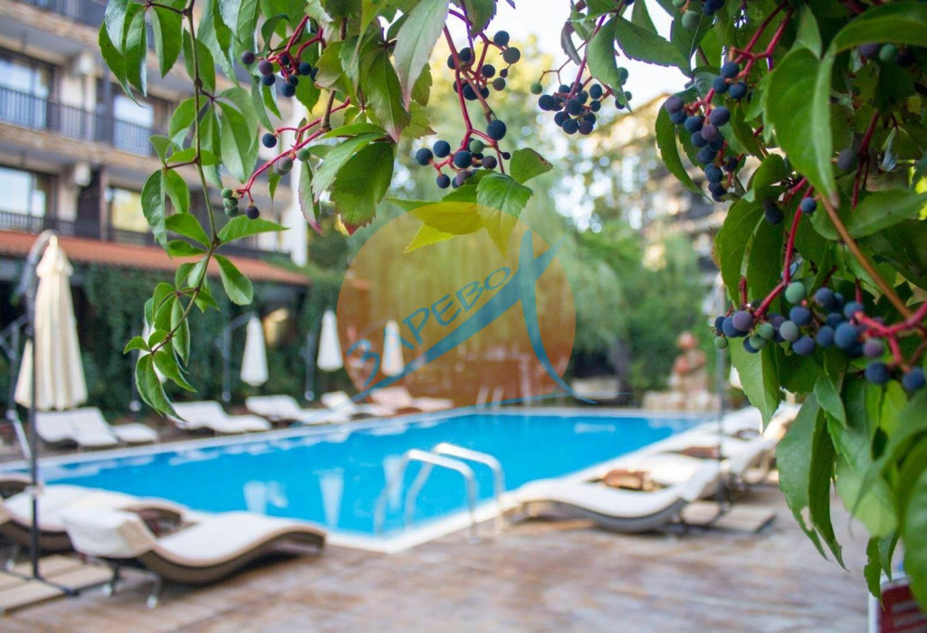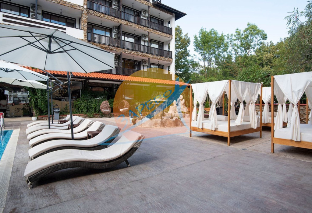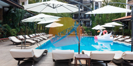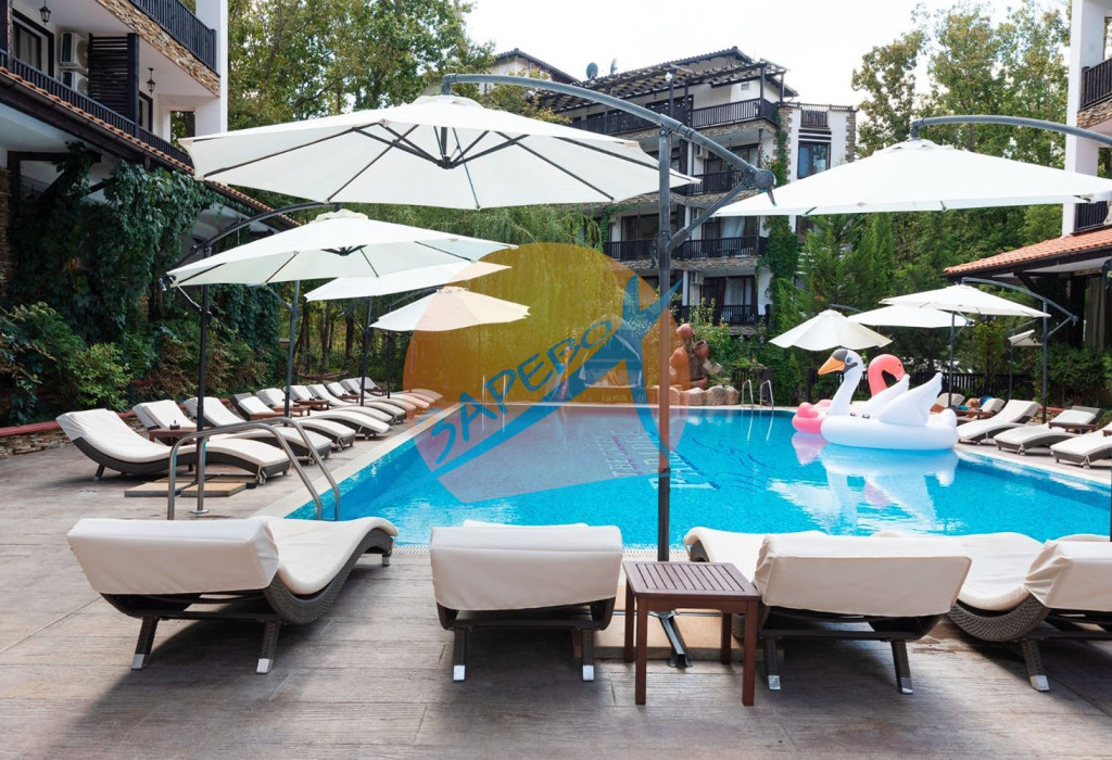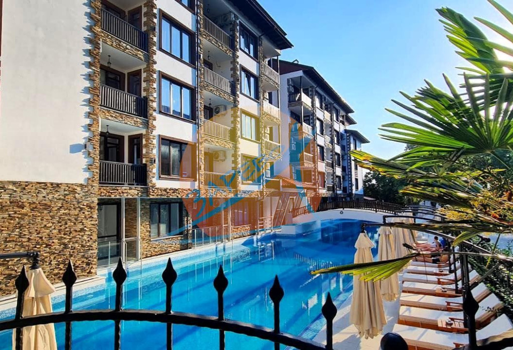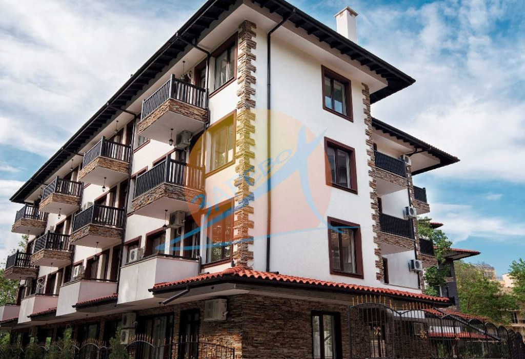 Primorsko, un nouvel appartement au rez-de-chaussée avec une cour anglaise, à clé en main, Green Paradise IV (Green Paradise IV). mètres, ce qui est un bonus à l'appartement. Il est disponible à la vente terminé, avec un revêtement de sol, des murs peints, une salle de bain entièrement équipée avec douche et chaudière, climatisation, portes intérieures. L'endroit où se trouve le complexe vous offrira le silence, le confort, la tranquillité, l'air forestier propre, l'ombre et la fraîcheur. Le complexe ne dure que 10 minutes à pied de la plage et du centre de Primorsko.