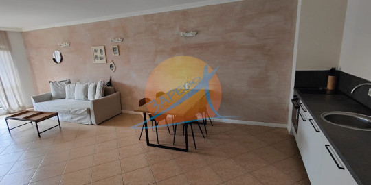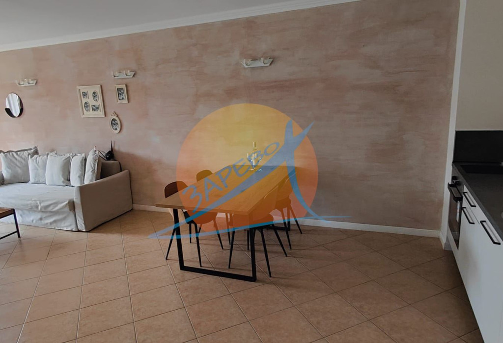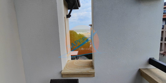 Състои се от просторна дневна с кухня, трапезария и хол, отделна спалня, баня с тоалетна и тераса с гледка градина и малко море. Продава се обзаведен и оборудван, напълно готов за ползване.