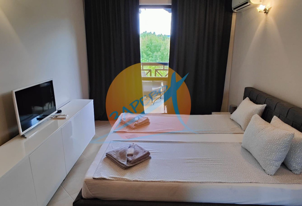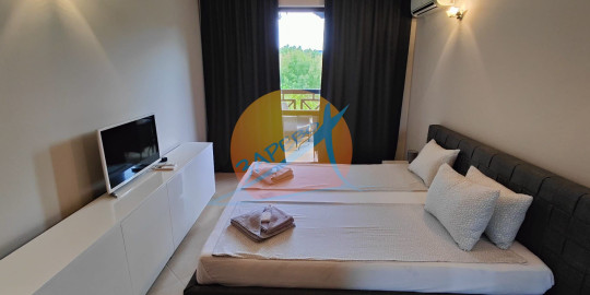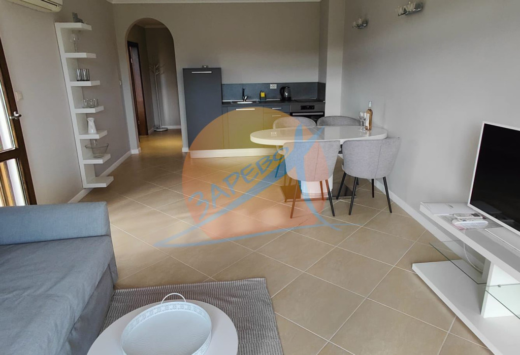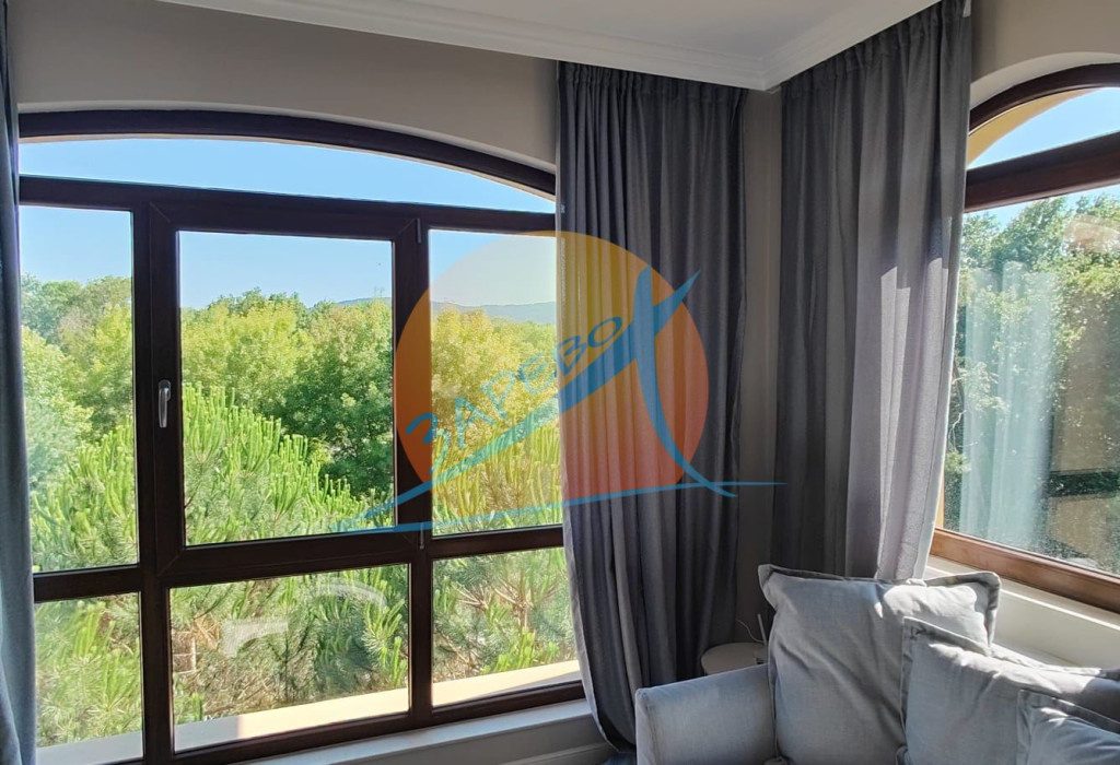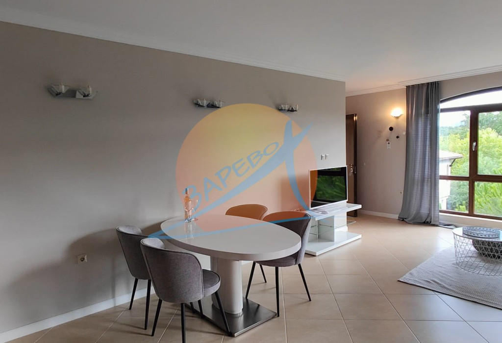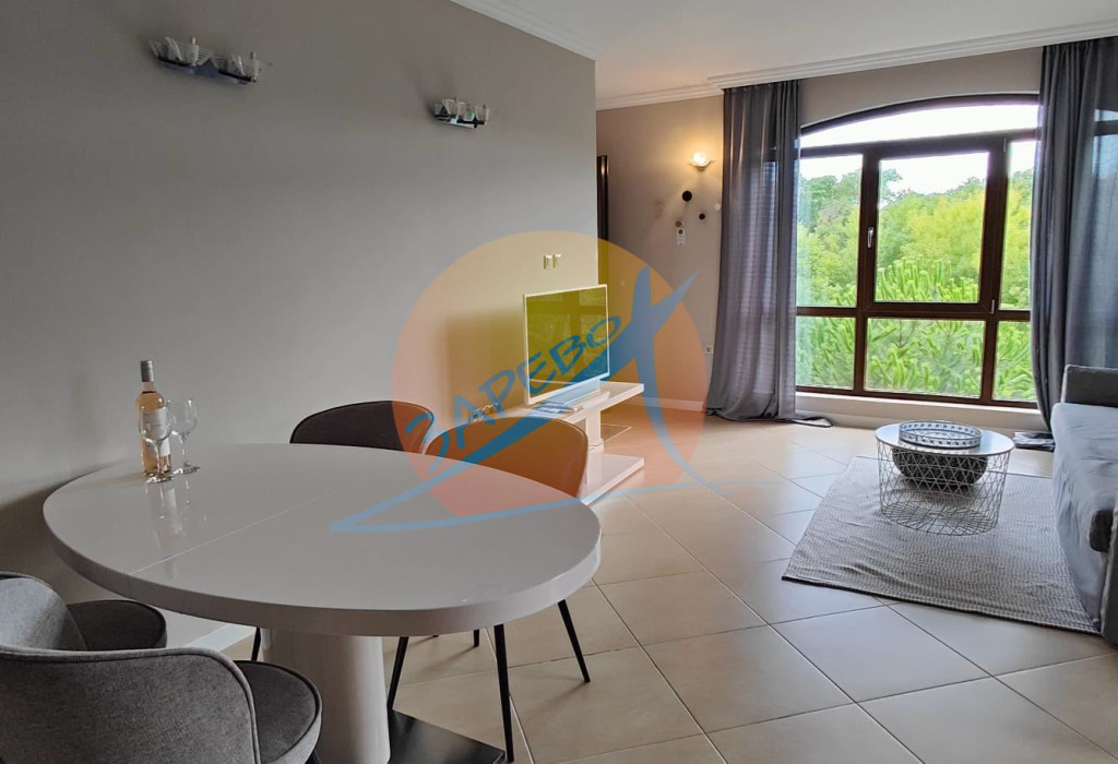Oasis Beach Club, Lozenets. Лозенец,Оазис Бийч Клуб, свежо обзаведен двустаен апартамент с прекрасна гледка към Странджа планина. Апартаментът е разположен в секция С, на 4-ти етаж, с обща площ от 84 кв.м. Състои се от дневна с кухня и трапезария, отделна спалня, баня с тоалетна и тераса с гледка към Странджа. Продава се напълно обзаведен и оборудван, готов за ползване.