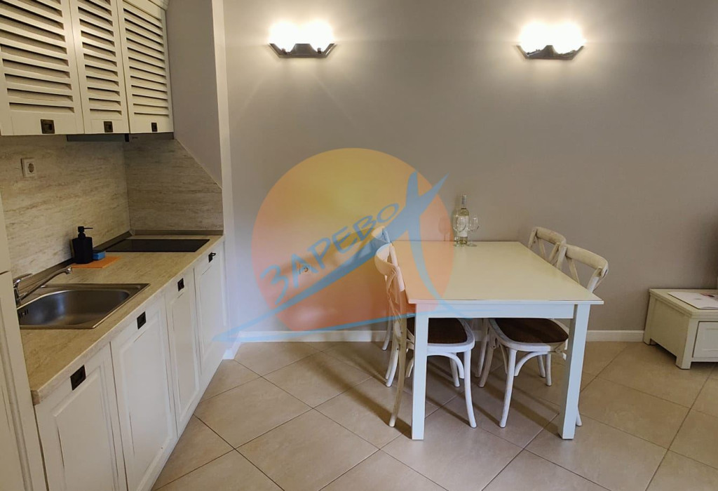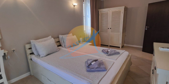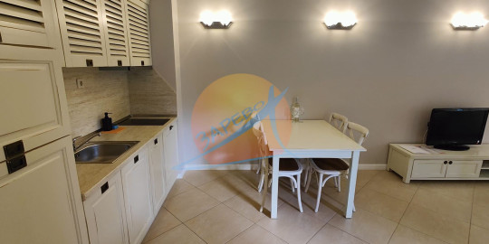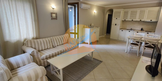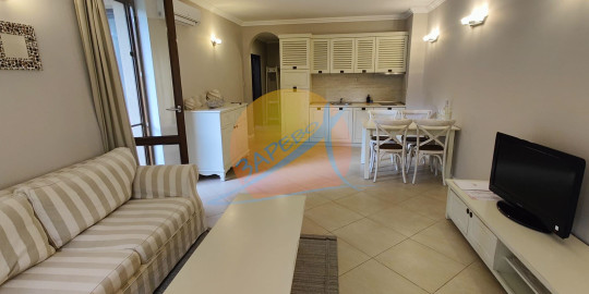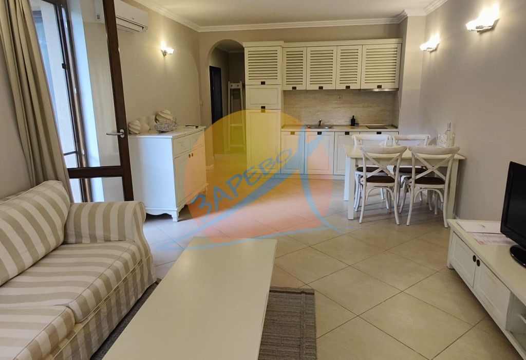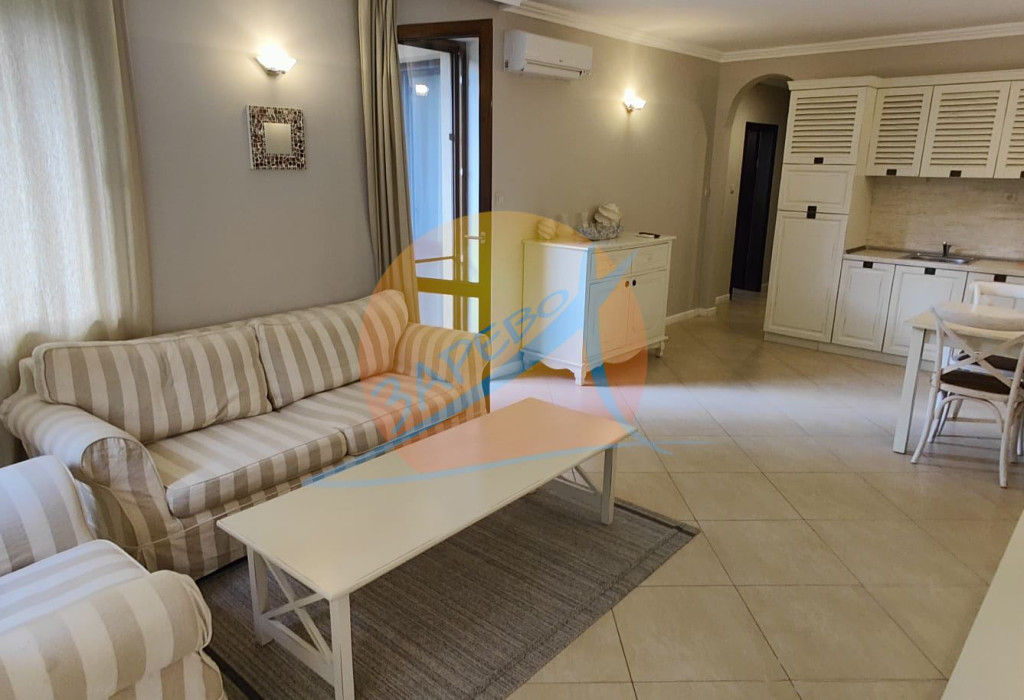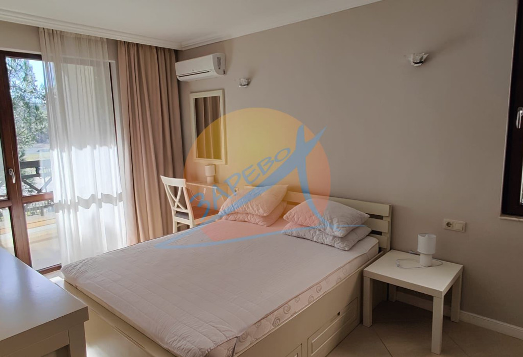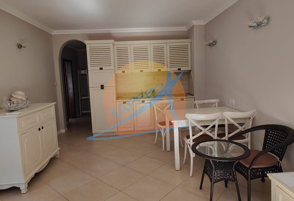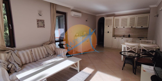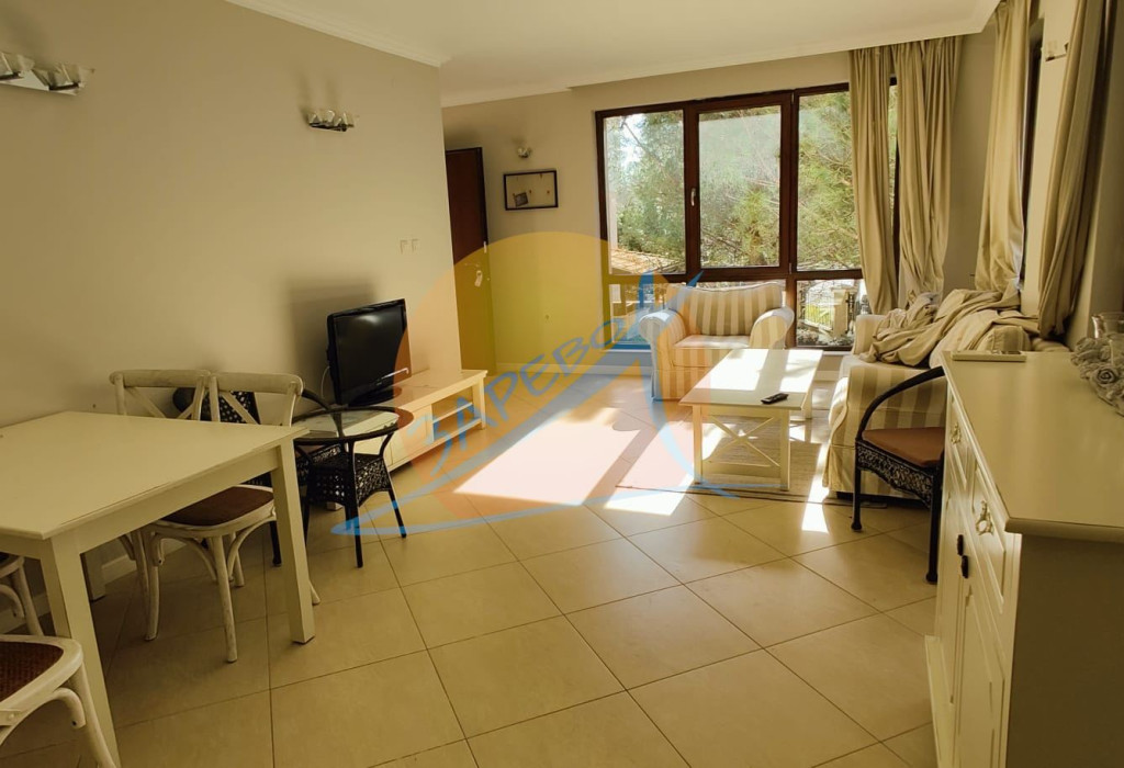 Oasis Beach Club, Lozenets. Стилно обзаведен двустаен апартамент, в Оазис Бийч Клуб, Лозенец, с гледка към парка, гората и Странджа планина. Апартаментът е разположен в секция С, на втори етаж /с асансьор/, с обща площ 84 кв.м. Състои се от дневна с кухня и трапезария, отделна спалня, баня с тоалетна и тераса. Продава се напълно обзаведен и оборудван, готов за ползване. Такса поддръжка: 20,5 € на кв.м. с ДДС.