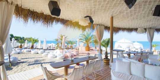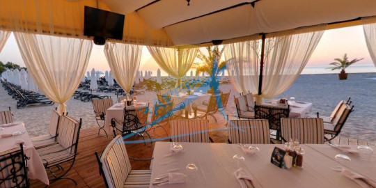 Откритият басейн и барът до него са точно до морето. Предлагат се безплатни хавлии, чадъри и шезлонги.