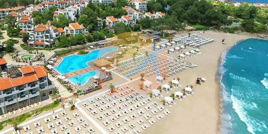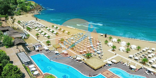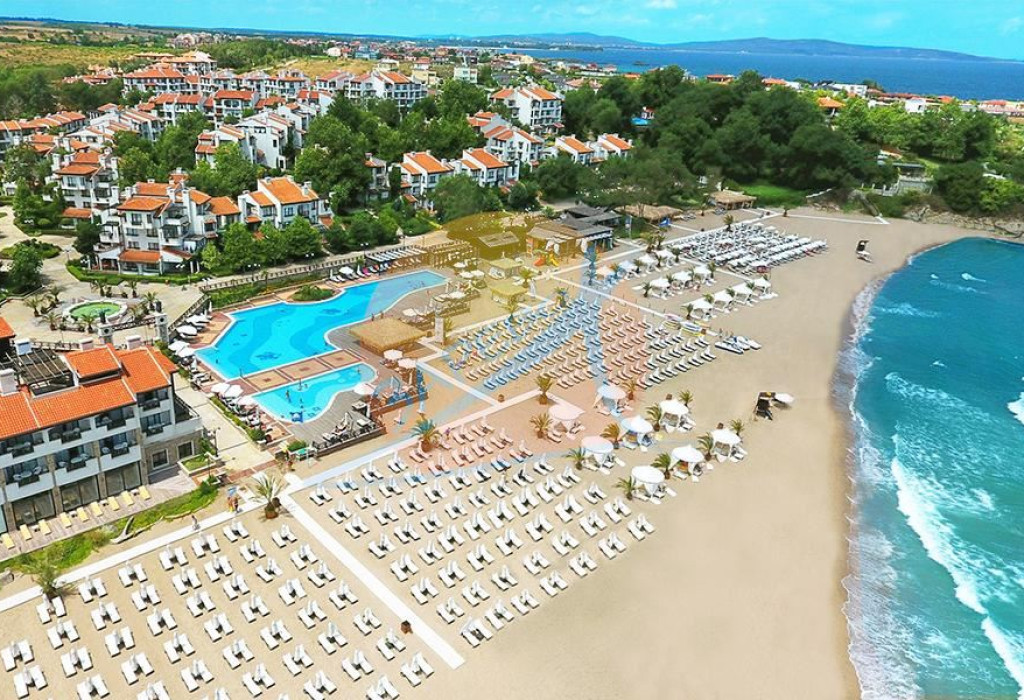 Апартаменти под наем Оазис Резорт и Спа, Лозенец! Oasis Resort & Spa се намира на 1 км от Лозенец, директно на брега на Черно море, на собствен плаж със син флаг, и предлага многобройни съоръжения на място. Климатизираните помещения са с изглед към парка или морето и включват телевизор с плосък екран и кабелни канали и безплатни чадъри и шезлонги на плажа.