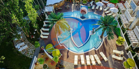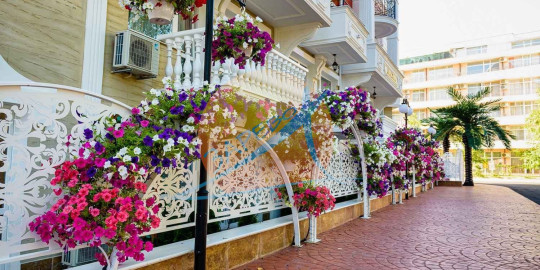 Територията е украсена с живи цветя във форма на река и басейн, проектиран в необикновена форма. Наблизо има паркова зона с обща площ 9 дка. Благоустроената територия, която граничи с комплекса и близкото разстояние до морето създават свой уникален климат.