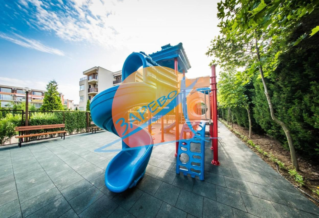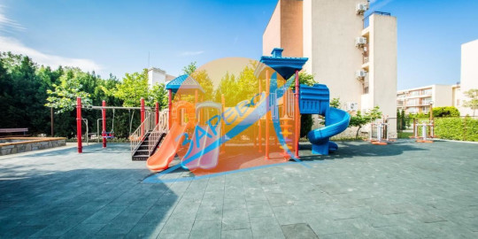 Намира се до аквапарка и на около 10 мин пеша до плажа. Има богато озеленена територия с няколко външни басейна, зона за тренировки на открито, детски площадки.