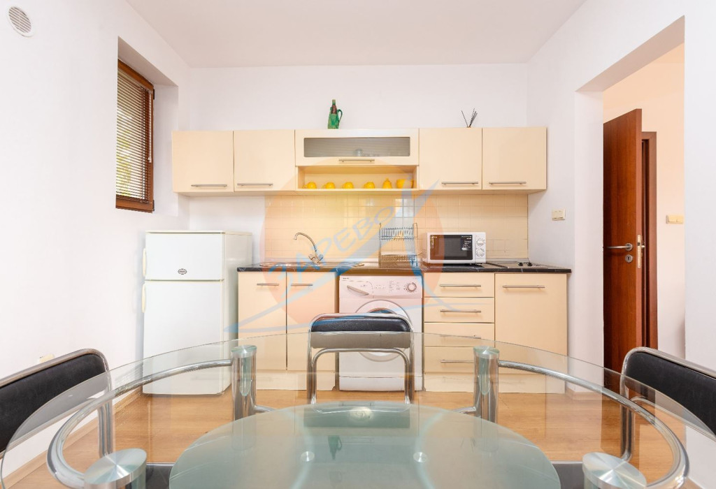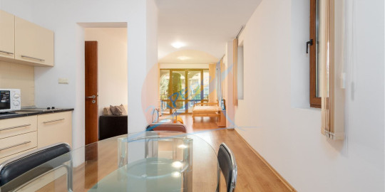 Състои се от антре, хол-трапезария с кухненски бокс, спалня, баня с тоалетна и балкон с гледка басейн.