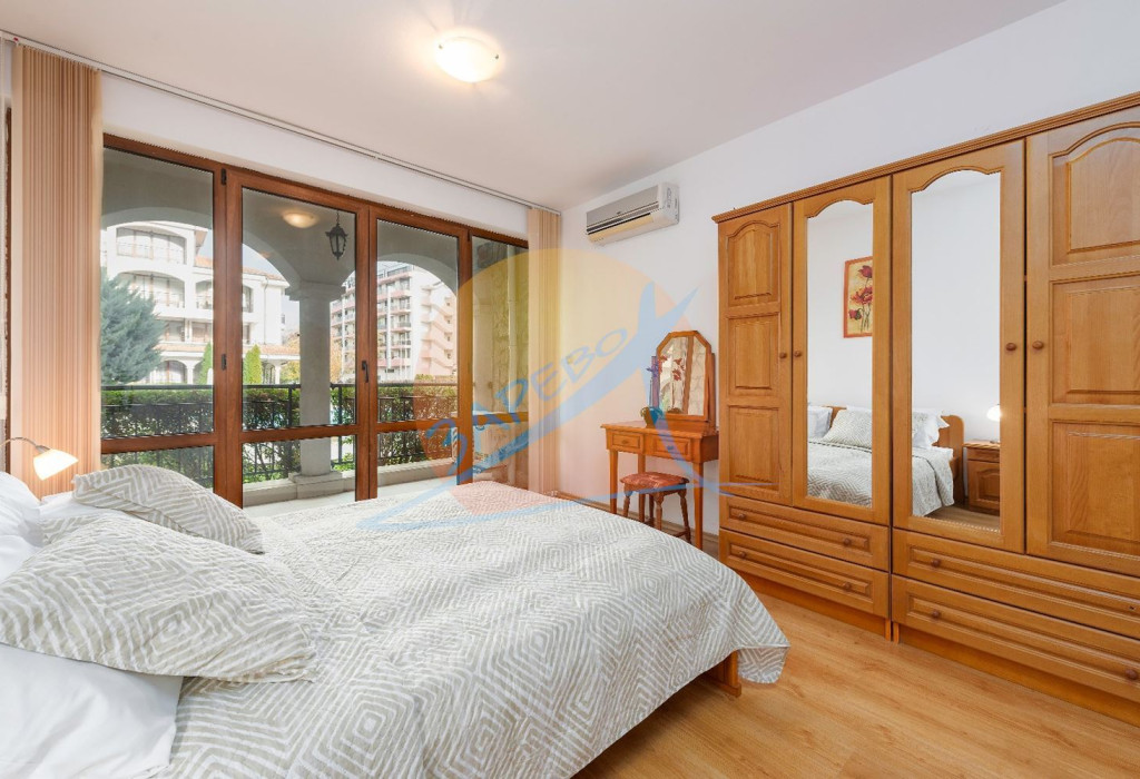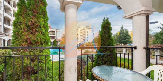 Слънчев Бряг, обзаведен двустаен с гледка басейн, Шато Дел Мар (Chateau Del Mar), разположен на партер, с площ от 92 кв.м.