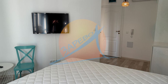 Студиото се състои от: всекидневна със спалня, масичка с 2 стола, гардероб, хладилник, телевизор, климатик, напълно оборудвана баня.