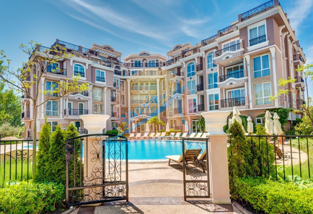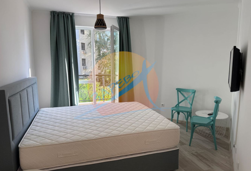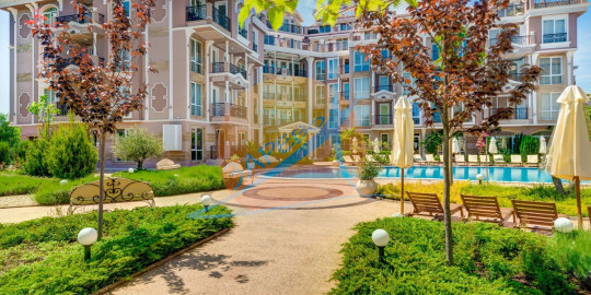 Слънчев бряг, стилно обзаведено студио разположено на 2 етаж с гледка към тенис корта в бутиковия комплекс “Изида Палас 2” (Izzida Palace 2). Луксозно обзаведено студио в бутиков новопостроен прекрасен комплекс с Акт 16 - Изида Палас 2, който се намира на обща територия с вече построения комплекс Изида Палас. Комплексът е разположен в тихата и спокойна част на курорт Слънчев Бряг, в непосредствена близост до аква парка и на 10-15 минути пеша до плажа.