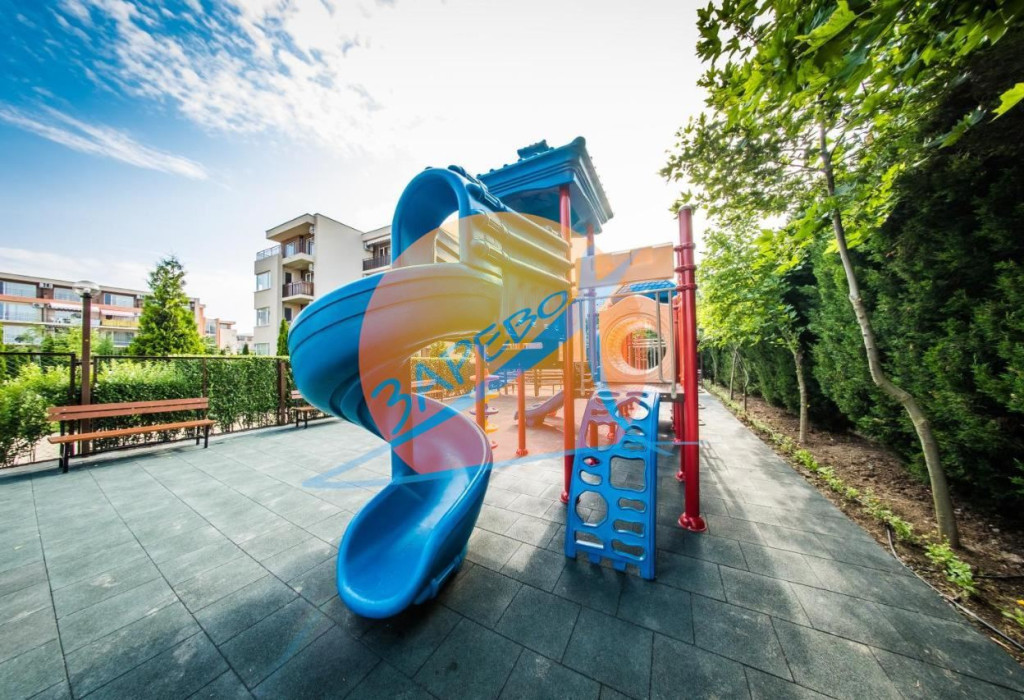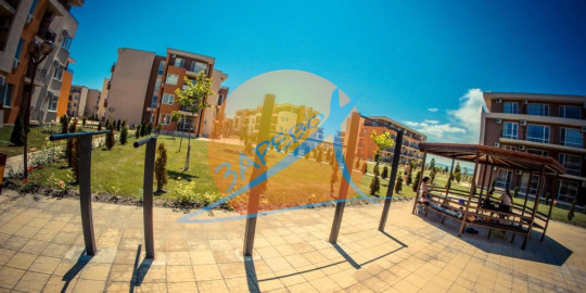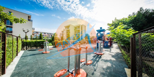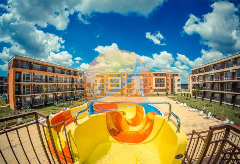 Намира се до аквапарка и на около 10 мин пеша до плажа. Има богато озеленена територия с няколко външни басейна, зона за тренировки на открито, детски площадки.