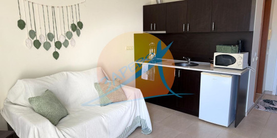 Имотът се състои от дневна стая с кухненски бокс и спална зона, баня с тоалетна и балкон и се продава с наличното обзавеждане и оборудване.