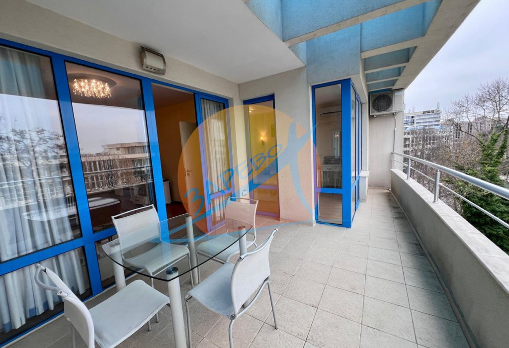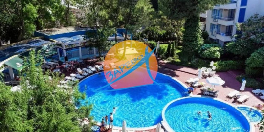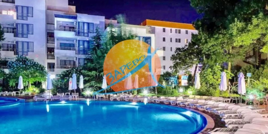 Слънчев бряг, първа линия, обзаведен двустаен с гледка басейн, апарткомплекс Екселсиор (Excelsior), разположен на 5-ти (предпоследен) етаж с площ от 83 кв.м.