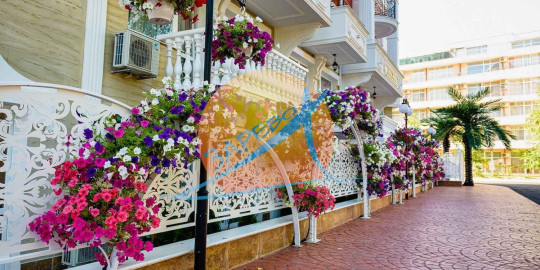 Територията е украсена с живи цветя във форма на река и басейн, проектиран в необикновена форма. Наблизо има паркова зона с обща площ 9 дка. Благоустроената територия, която граничи с комплекса и близкото разстояние до морето създават свой уникален климат.