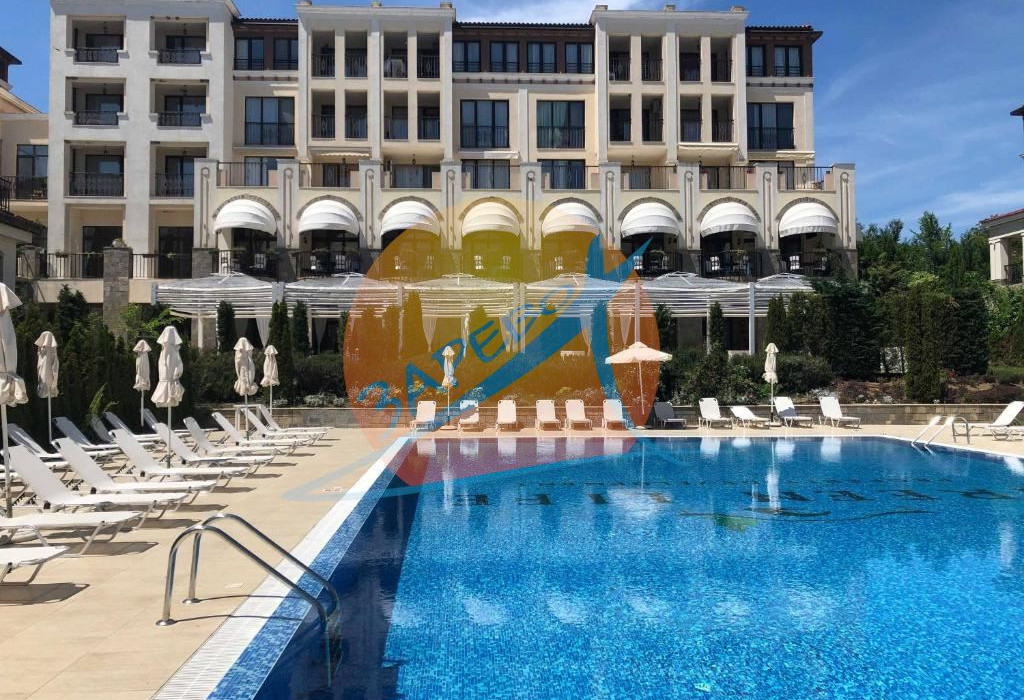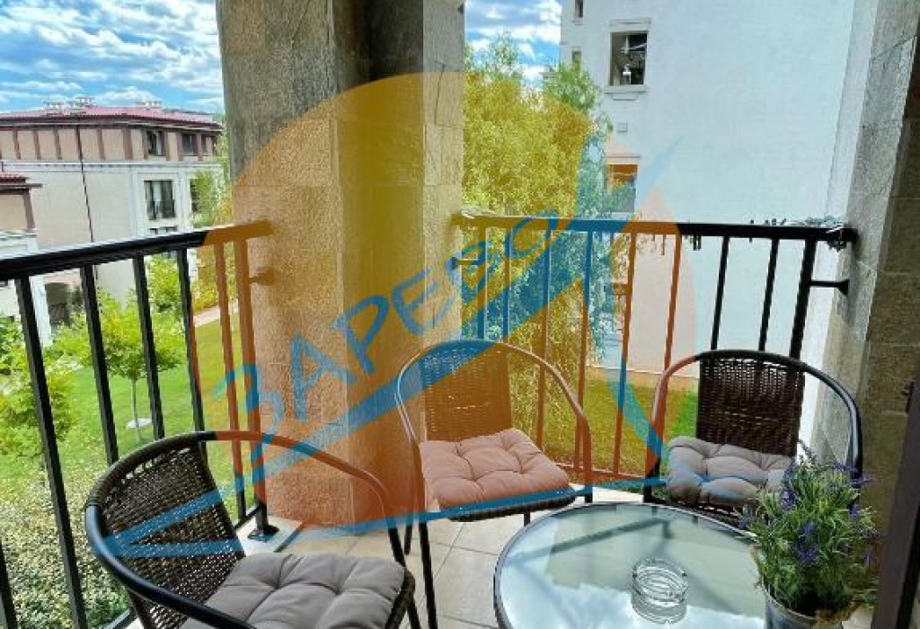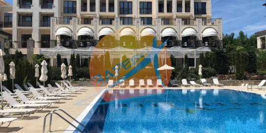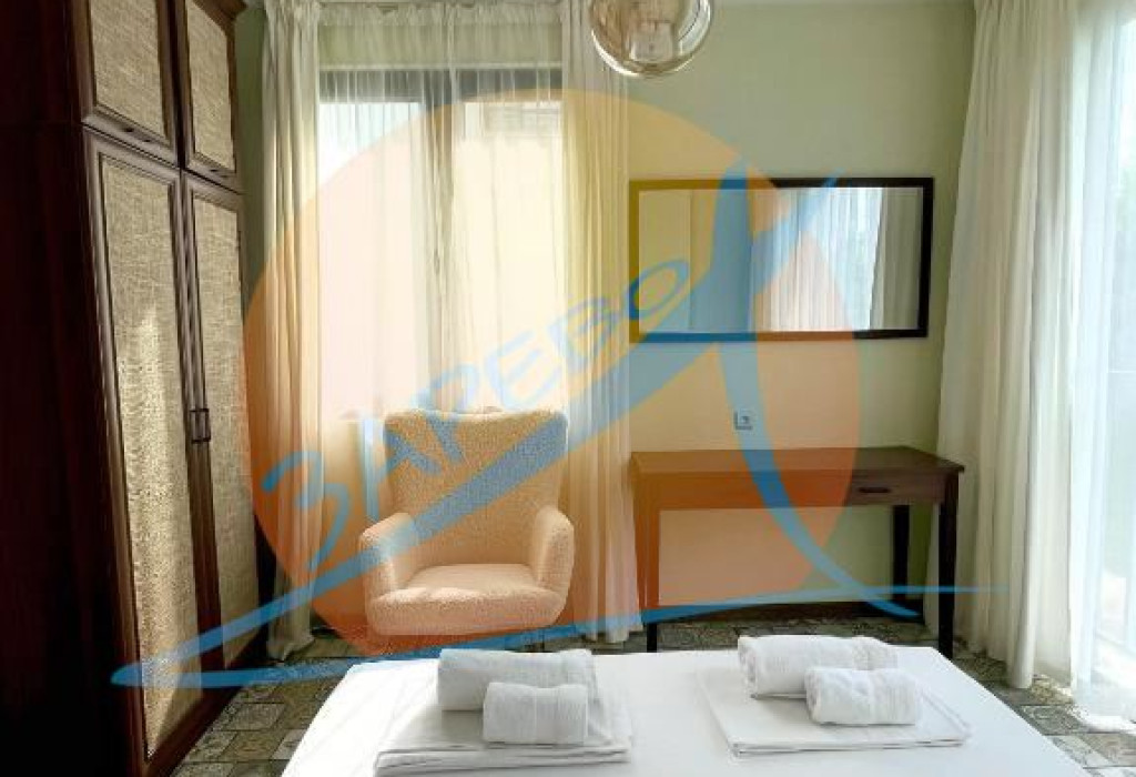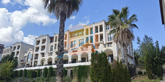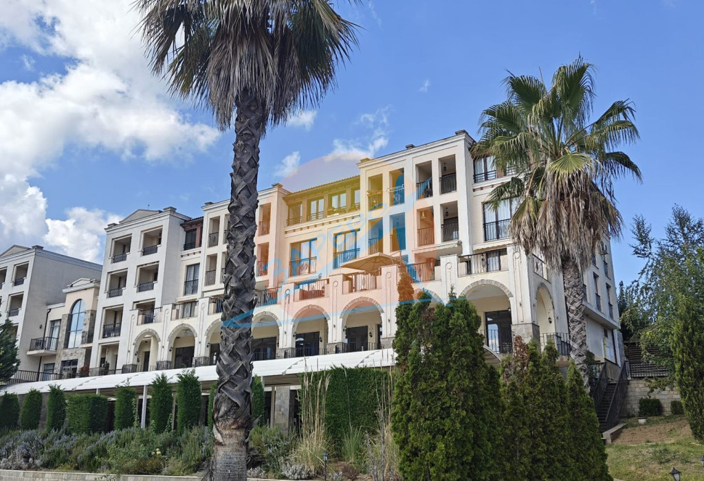 Разпределението включва антре с място за съхранение, тоалетна, просторна, съвременно оборудвана дневна с кухня и трапезария с френски прозорци и странична гледка море, тераса с гледка към красивата територия на комплекса, две отделни просторни спални, баня с тоалетна и душкабина. Обзаведен и оборудван е с вкус и внимание към детайла, с всичко необходимо за Вашия морски дом. Отлична инвестиция за лично ползване или отдаване под наем.