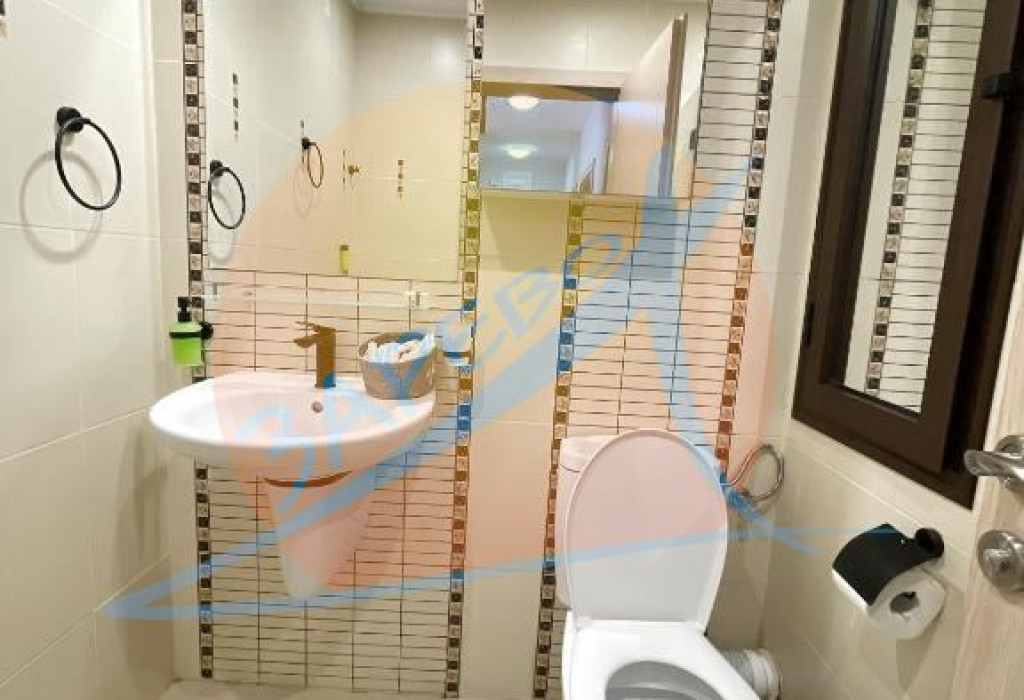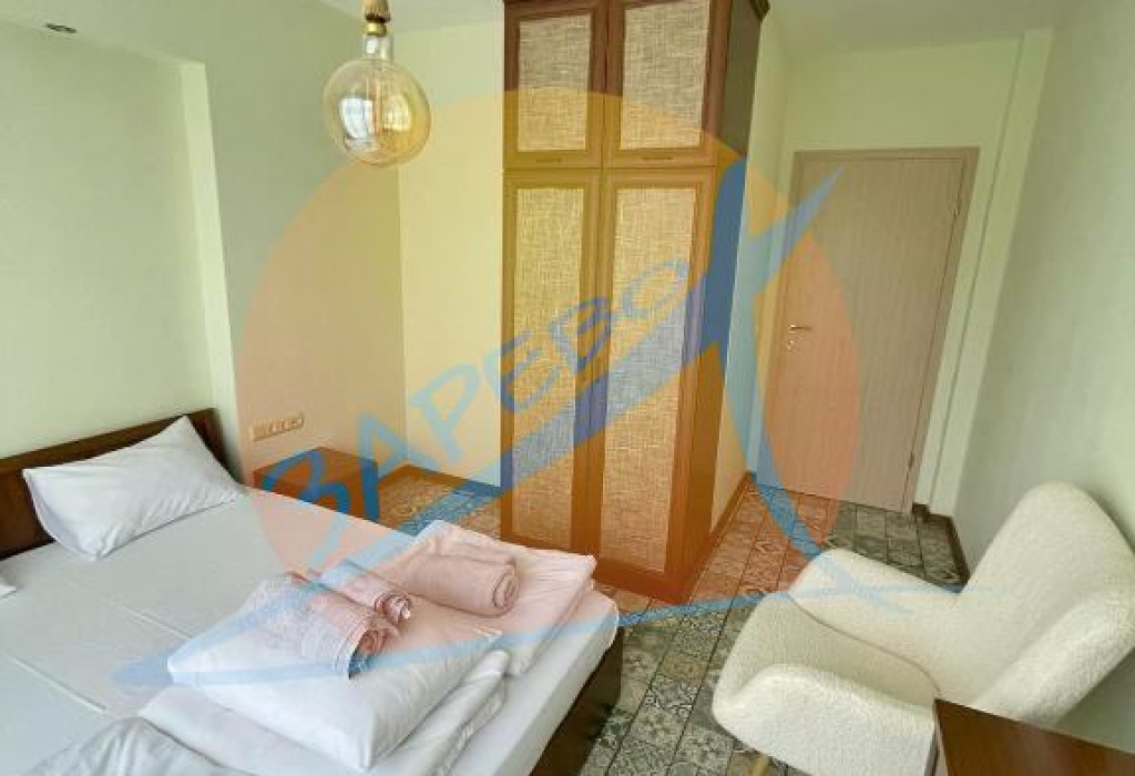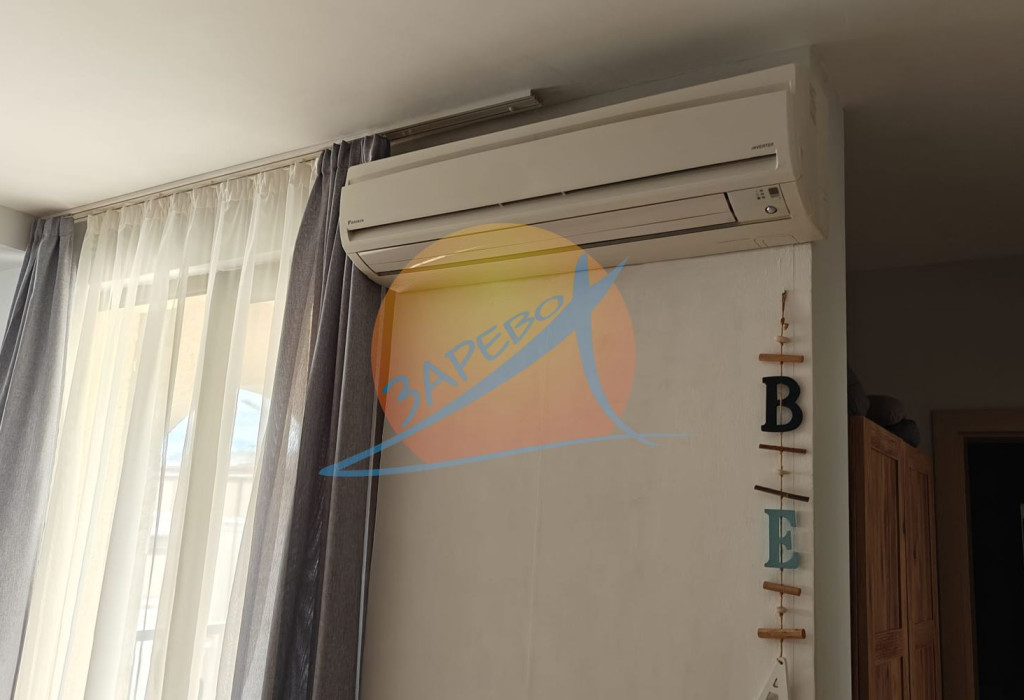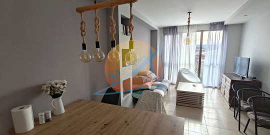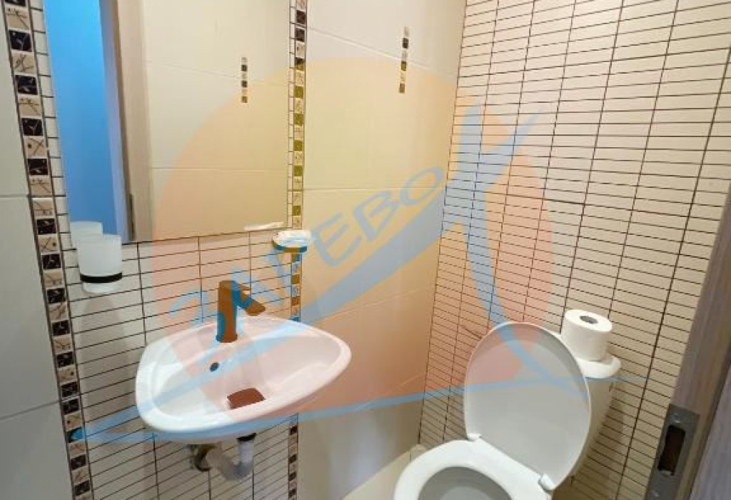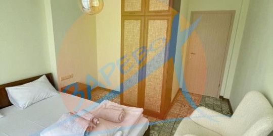 Разпределението включва антре с място за съхранение, тоалетна, просторна, съвременно оборудвана дневна с кухня и трапезария с френски прозорци и странична гледка море, тераса с гледка към красивата територия на комплекса, две отделни просторни спални, баня с тоалетна и душкабина. Обзаведен и оборудван е с вкус и внимание към детайла, с всичко необходимо за Вашия морски дом. Отлична инвестиция за лично ползване или отдаване под наем.