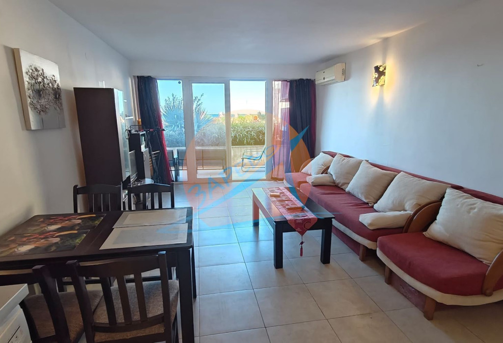 Апартаментът се намира на партерен етаж и е напълно обзаведен и оборудван, готов за ползване и почивка, подовите настилки са гранитогрес, с климатици и в двете стаи. Състои се от голяма всекидневна с кухня и трапезария, спалня, баня с тоалетна и веранда с излаз към басейна и прекрасна гледка към морето и плажа Хармани. Комплекс Перлите е малък и уютен, с басейн и паркинг. Районът е тих и спокоен, в близост до целогодишно работещата инфраструктура на Созопол.