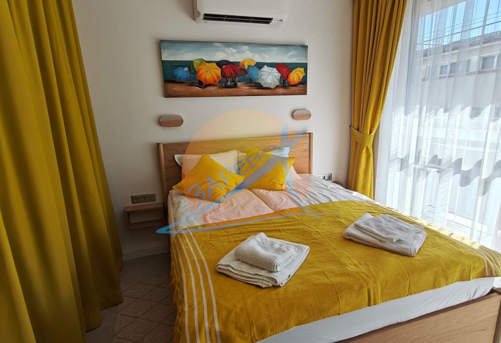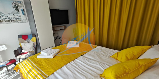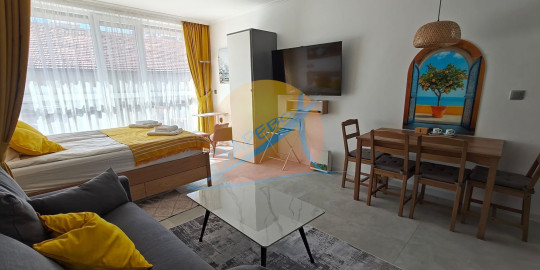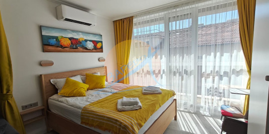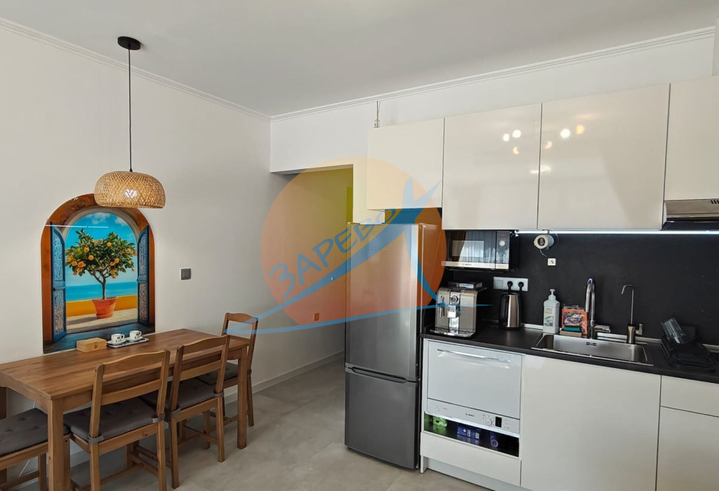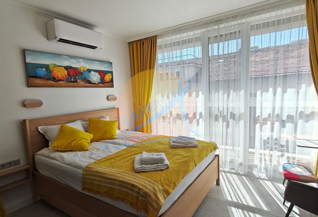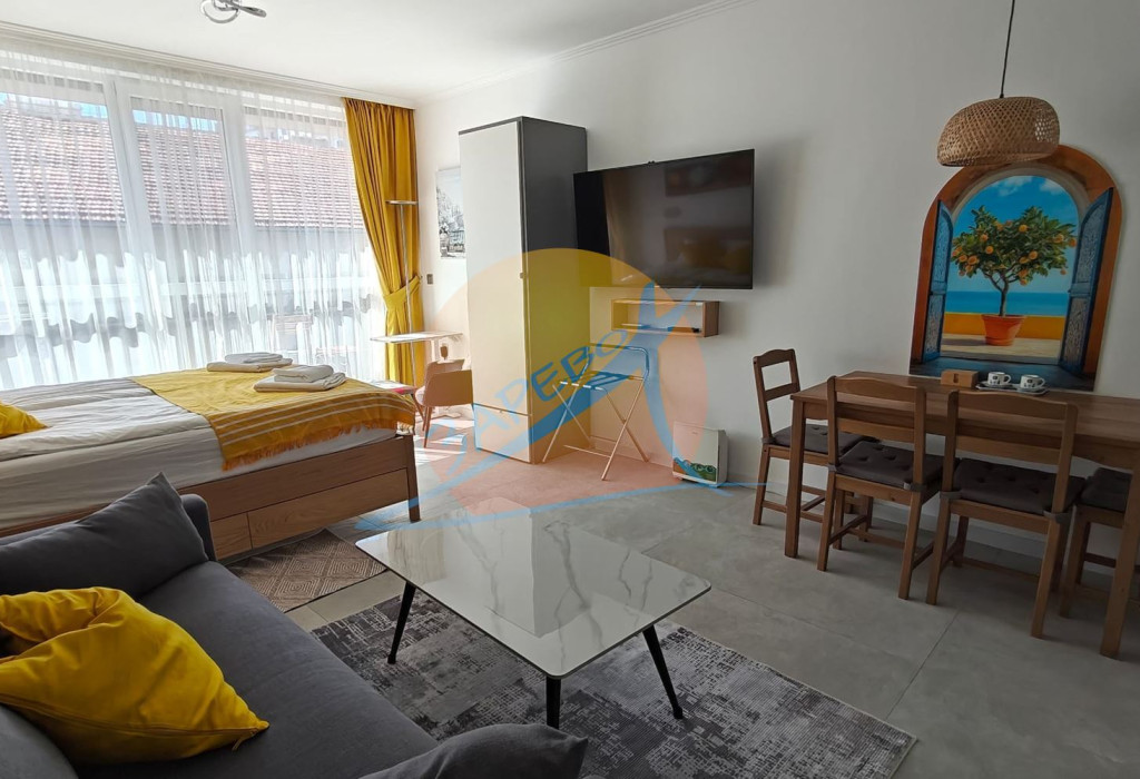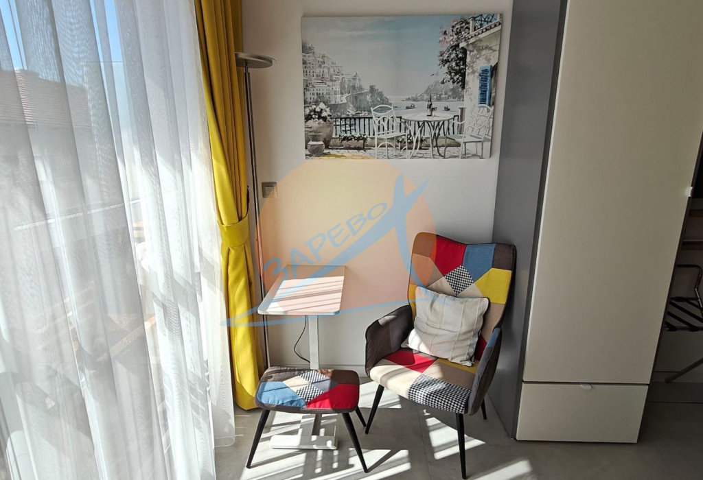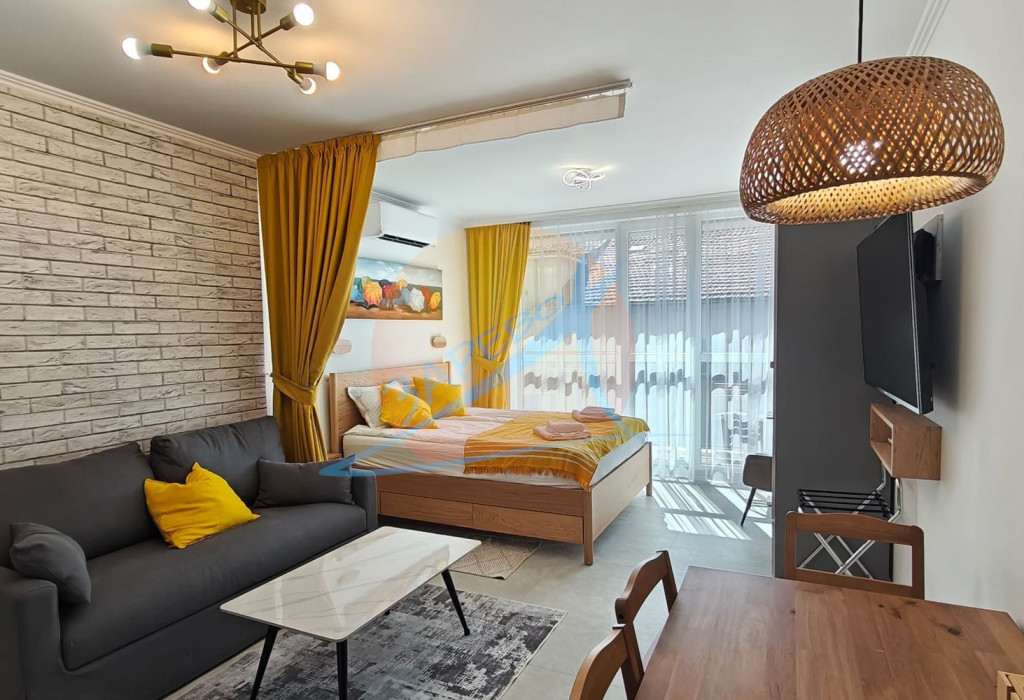 De închiriat apartament cu o cameră luminos, diferit, confortabil, cald, sudic, mobilat și utilat modern - garsonieră, cu mai multe zone - dormitor separat, living cu o canapea extensibilă mare, bucătărie completă cu frigider mare, mașină de spălat vase, aragaz, aparat de cafea, sufragerie, zonă de lucru cu cabină de duș și zonă de relaxare, baie balcon. Locație unică - în centrul orașului Burgas, la 300 de metri de Universitatea Liberă din Burgas, la 50 de metri de școala primară Vasil Aprilov, la 100 de metri de Novata postha, la 600 de metri de zona pietonală de pe strada Aleksandrovska și la 700 de metri de Grădina Mării. Lângă clădire - stații de linii de autobuz rapid. Intr-un bloc modern - Chantrer Residence, cu paza, portar, magazine, Lidl, DM, farmacie.