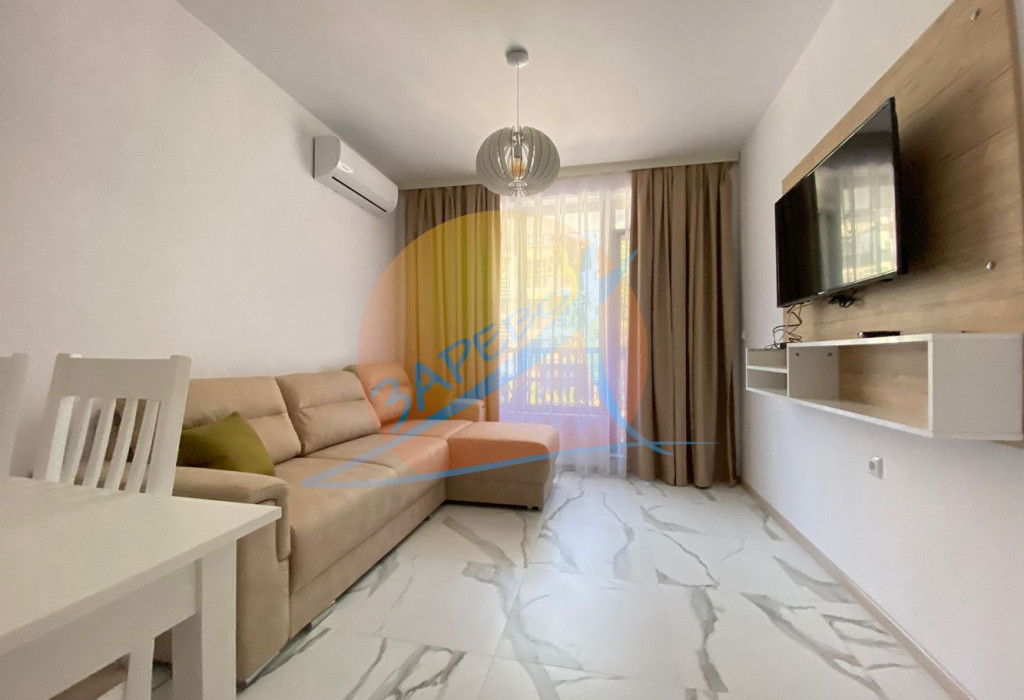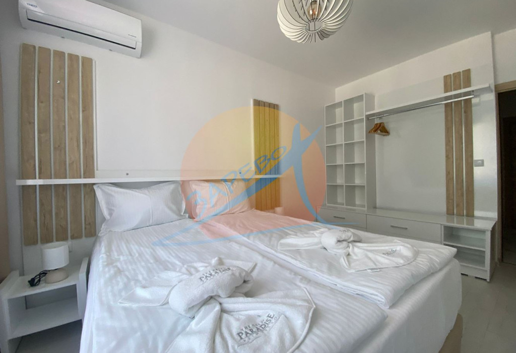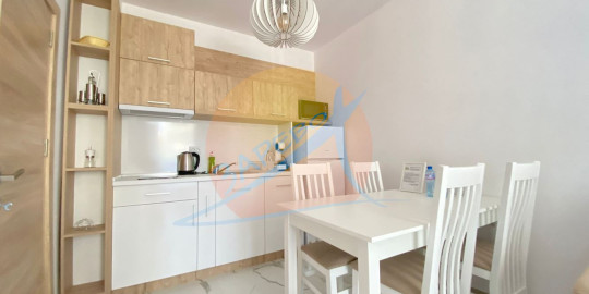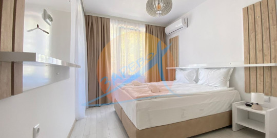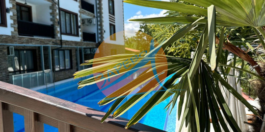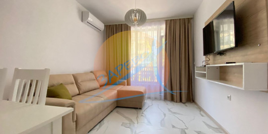 Квартира расположена на 2 -м этаже с площадью 53 квадратных метров. Он состоит из входного зала, гостиной с кухней, спальни, ванной комнаты с туалетом и балкона. Он предлагается для продажи современно обставленной и оборудованной, готовой к использованию.