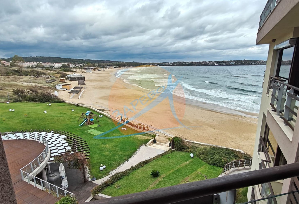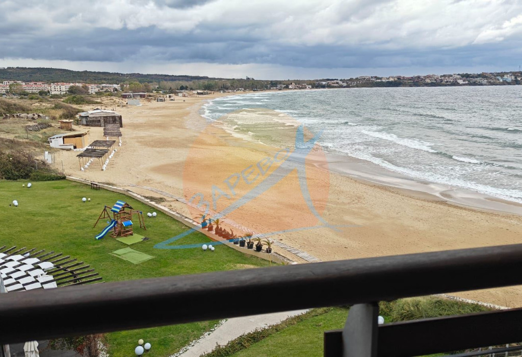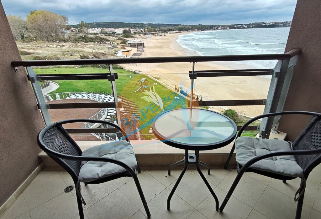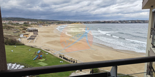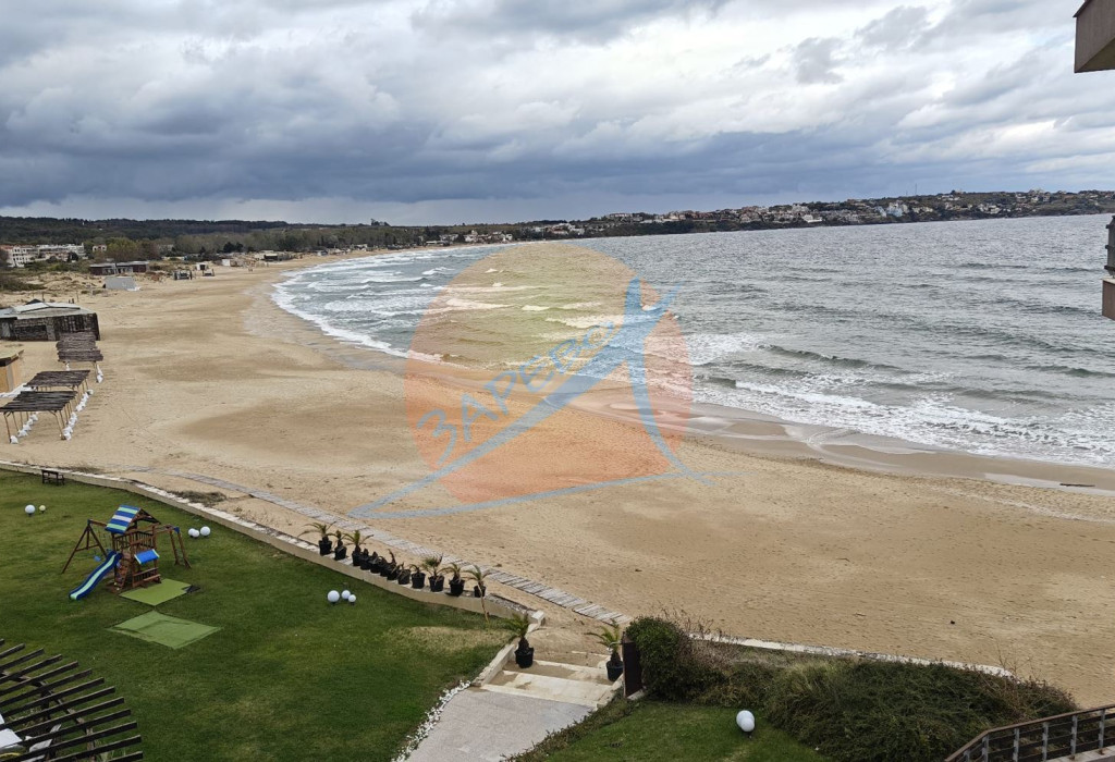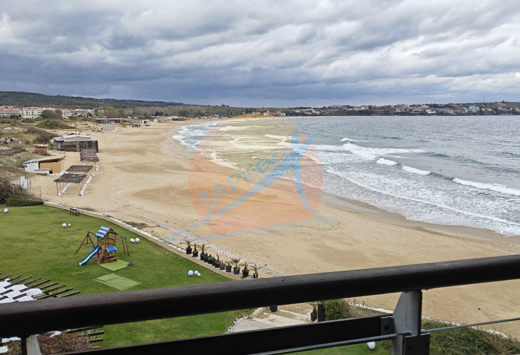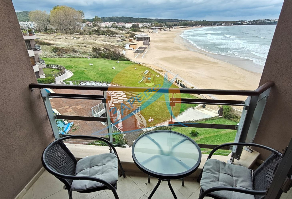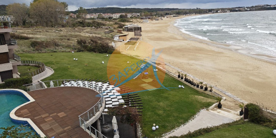 Созопол, Санд Лилис, прва линија мора, на песку плаже Каваци! Намештен двособан стан са погледом на море и базен, комплекс Санд Лиллиес који ради током целе године. Стан је двособан, са засебном спаваћом собом, налази се на 4., не последњем спрату, површине 79 м2. Састоји се од улазног ходника, чајне кухиње, купатила са тоалетом, дневног боравка са дневним боравком и трпезаријом, спаваће собе и терасе, на коју се излази из обе собе, са погледом на море.