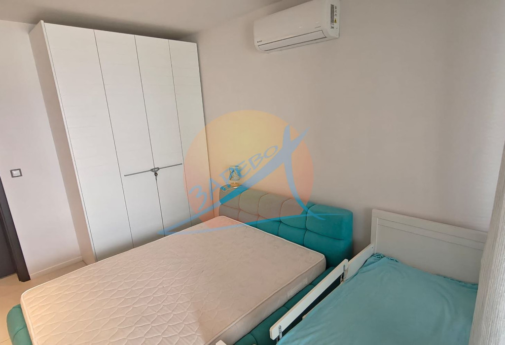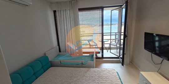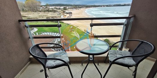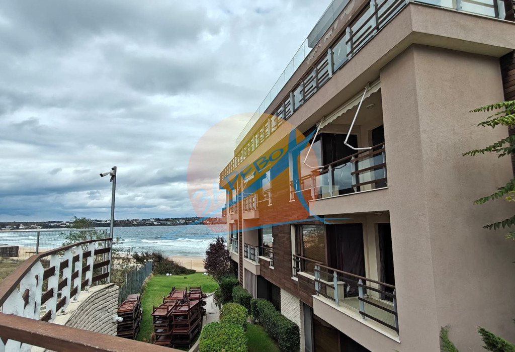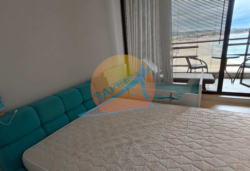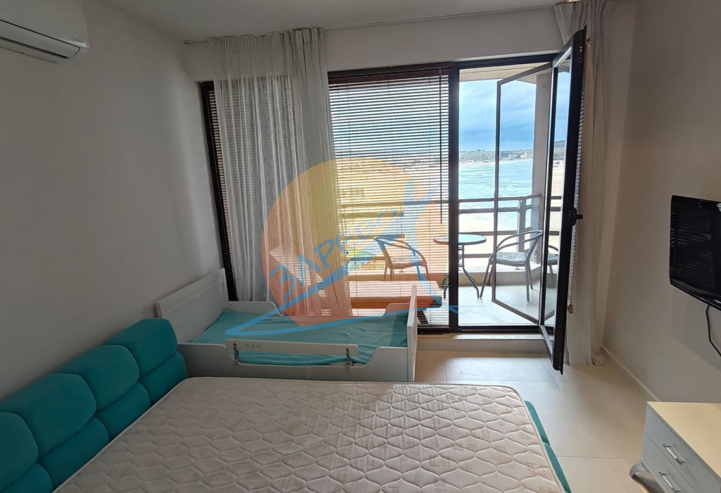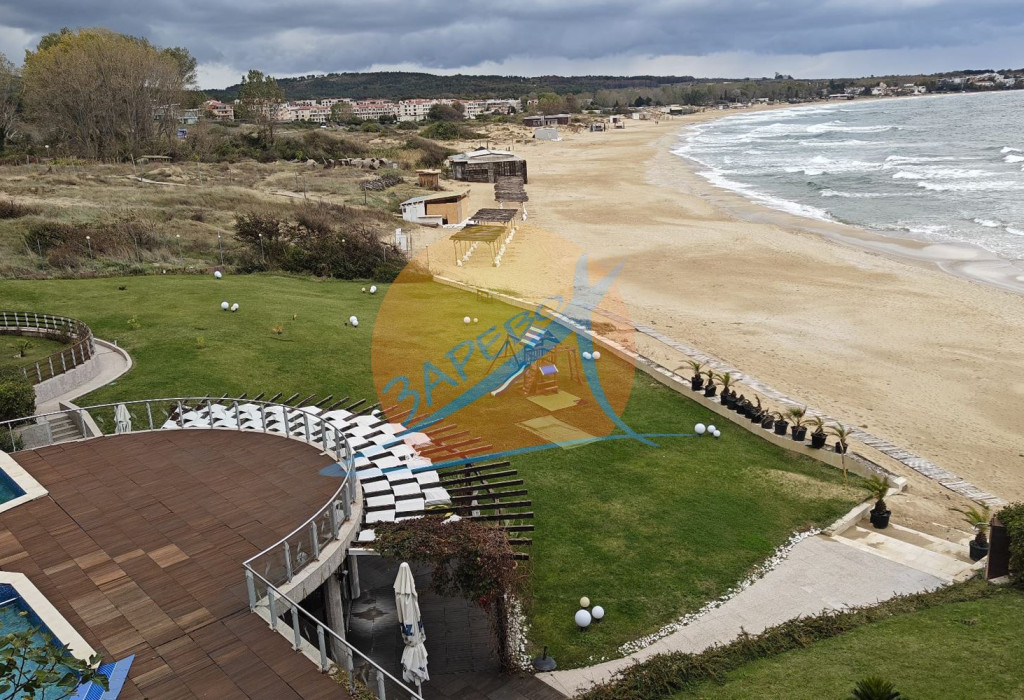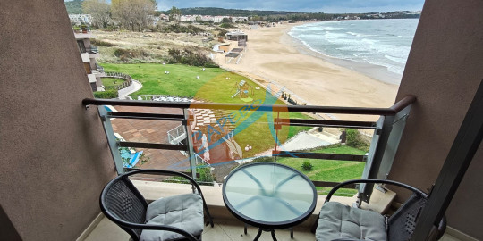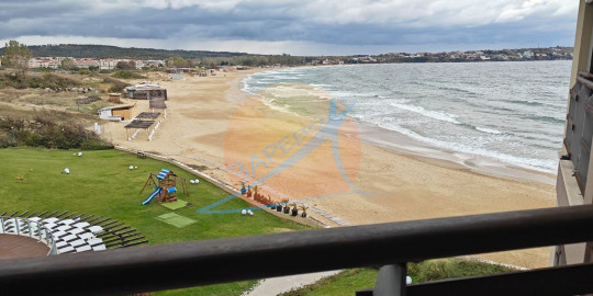 Созопол, Санд Лилис, прва линија мора, на песку плаже Каваци! Намештен двособан стан са погледом на море и базен, комплекс Санд Лиллиес који ради током целе године. Стан је двособан, са засебном спаваћом собом, налази се на 4., не последњем спрату, површине 79 м2. Састоји се од улазног ходника, чајне кухиње, купатила са тоалетом, дневног боравка са дневним боравком и трпезаријом, спаваће собе и терасе, на коју се излази из обе собе, са погледом на море.